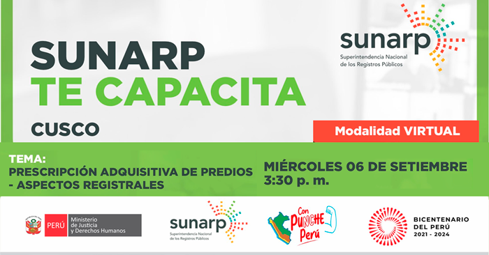 Charla virtual gratuita "Prescripción adquisitiva de predios - Aspectos registrales" de la SUNARP