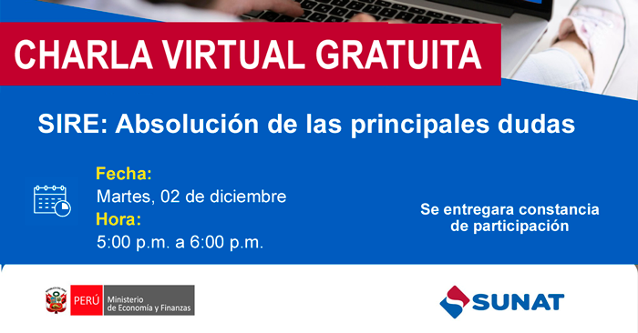 SUNAT ofrece charlas online gratis de orientación tributaria. Para participar tienes que registrarte previamente, luego de asistir podrás descargar el certificado de asistencia y el material informa ...