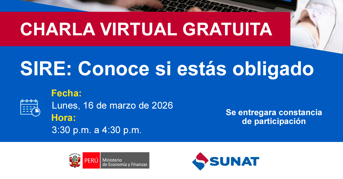 Charla virtual gratuito "SIRE: Conoce si estás obligado" de la SUNAT