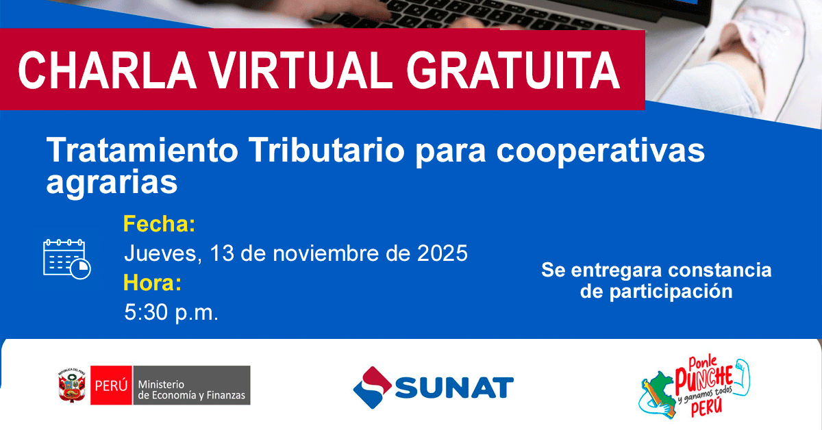 Charla virtual gratuita "Tratamiento Tributario para cooperativas agrarias" de la SUNAT