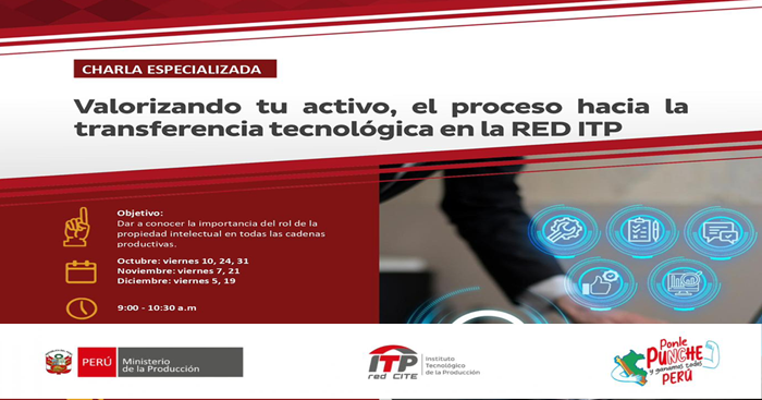 Charla virtual gratuita "Valorizando tu activo: el proceso hacia la transferencia tecnológica en la RED ITP" del ITP