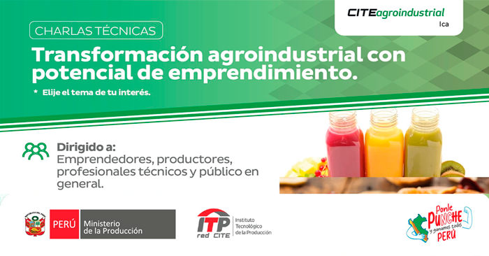 Charlas virtuales "Transformación agroindustrial con potencial de emprendimiento" del CITEagroindustrial Ica