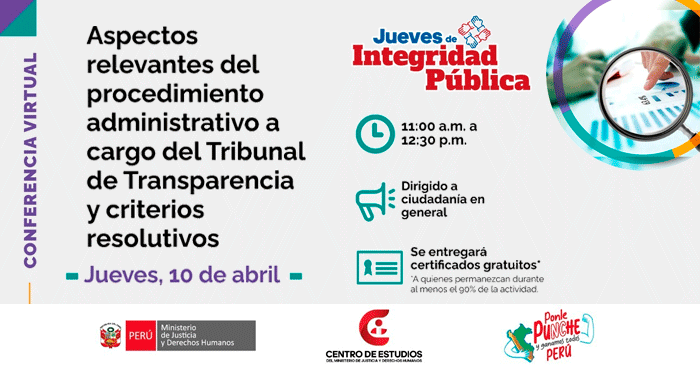 Conferencia virtual "Aspectos relevantes del procedimiento administrativo a cargo del Tribunal de Transparencia y criterios resolutivos" del MINJUSDH