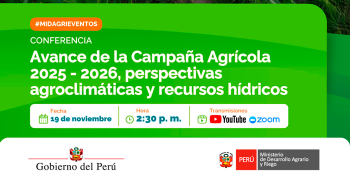 Organizado por: El Ministerio de Desarrollo Agrario y Riego, en alianza con el Programa Nacional País y el Servicio Nacional de Meteorología e Hidrología del Perú, a través de la Red Nacional de Difusión de Información Agraria Especializada - REDIAGRO, del MIDAGRI, Direcciones y Gerencias Regionales de Agricultura de los Gobiernos regionales y aliados estratégicos.