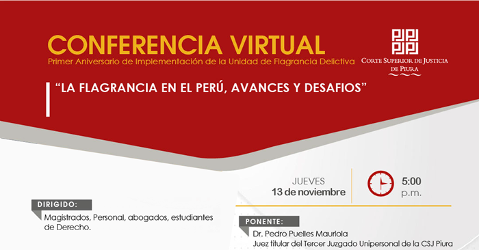 Conferencia virtual "La Flagrancia en el Perú, Avances y Desafíos" de la Corte Superior de Justicia de Piura