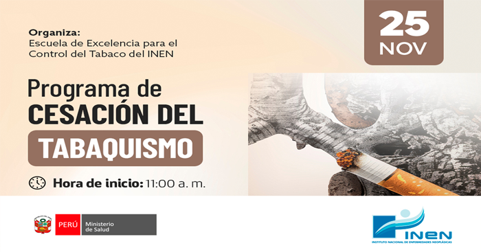 El INEN ofrece Conferencia virtual sobre cáncer de pulmón “Programa de cesación del tabaquismo”