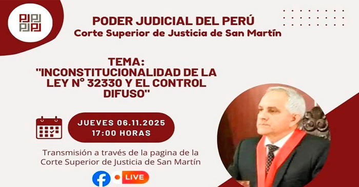 Conferencia virtual "Inconstitucionalidad de la Ley N° 32330 y el control difuso" del Corte Superior de Justicia de San Martín