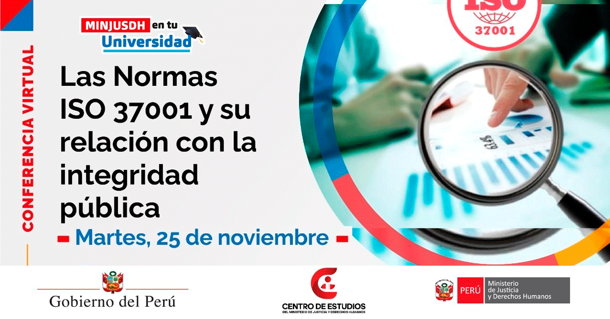 Conferencia virtual "MINJUSDH en tu Universidad: Las Normas ISO 37001 y su relación con la integridad pública" del MINJUSDH