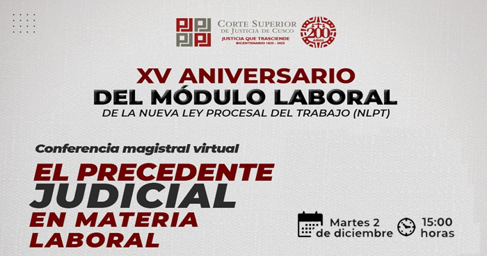 Dirigido a: Magistrados, personal jurisdiccional y administrativo de la CSJ Cusco, así como abogados y público en general.