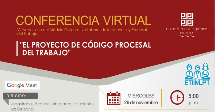 Conferencia virtual "El Proyecto de Código Procesal del Trabajo" de la Corte Superior de Justicia de Piura