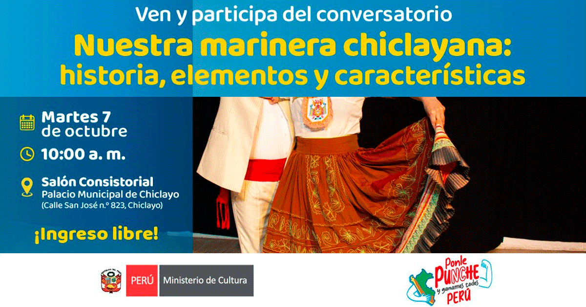 Conversatorio presencial gratuito: "Nuestra marinera chiclayana: historia, elementos y características"