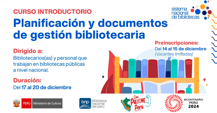 Dirigido a: Bibliotecarios(as) y personal que trabajan en bibliotecas públicas a nivel nacional.