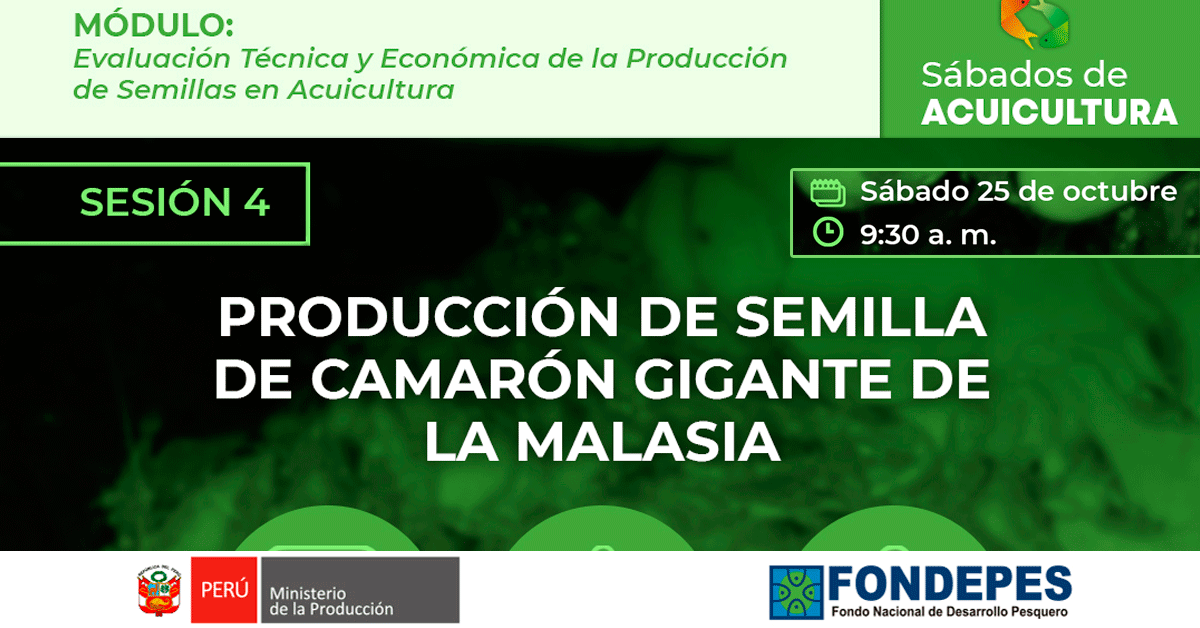 Curso virtual gratuito "Sábados de Acuicultura: Producción de semilla de camarón gigante de la malasia" del FONDEPES