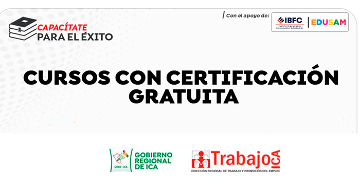 Cursos presenciales gratuitos con certificación de la Dirección Regional de Trabajo y Promoción del Empleo de Ica