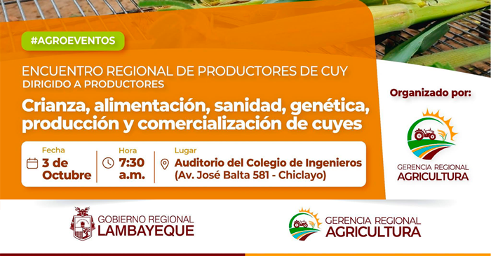 Evento presencial "Encuentro Regional de Productores de Cuy" de la Gerencia Regional de Agricultura Lambayeque
