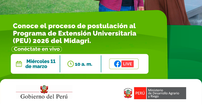 El PEU 2026 Cultivando Talentos te ofrece formación en gestión pública y el sector agrario, con capacitaciones de especialistas y la posibilidad de realizar prácticas profesionales en el Midagri. ...