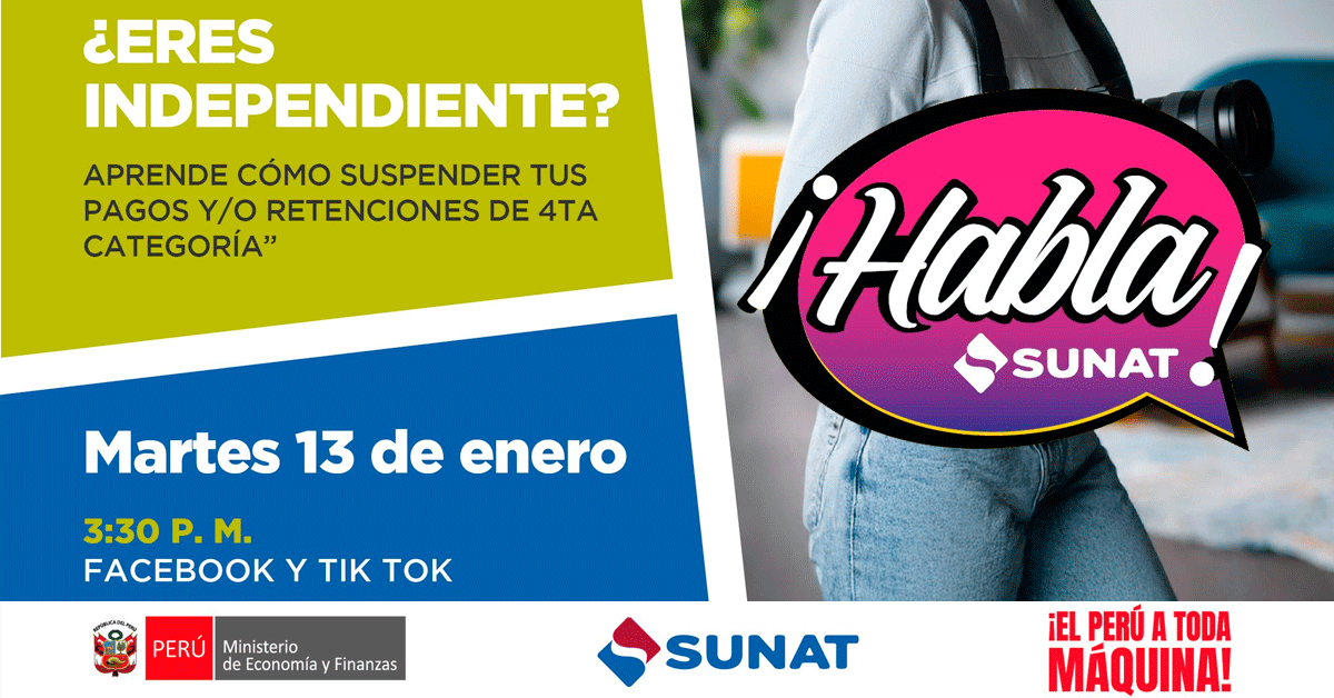 Evento virtual gratuito "¿Eres independiente? Aprende cómo suspender tus pagos y/o retenciones de 4ta categoria" de la SUNAT