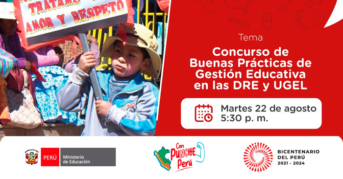 Evento virtual gratuito "Concurso de Buenas Prácticas de Gestión Educativa en las DRE y UGEL" del (MINEDU)