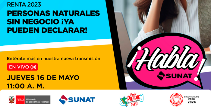 Evento virtual gratuito "Renta 2023 personas naturales sin negocio" de la SUNAT