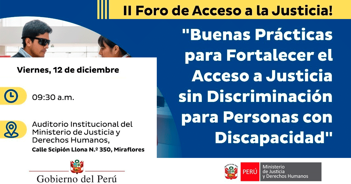 Objetivo: Reunir a instituciones públicas y organizaciones de la sociedad civil para compartir experiencias y buenas prácticas que promuevan un acceso a la justicia inclusivo, accesible y sin discriminación. También se presentarán los resultados del I Foro “Retos y Desafíos en el Acceso a Justicia sin Discriminación”.