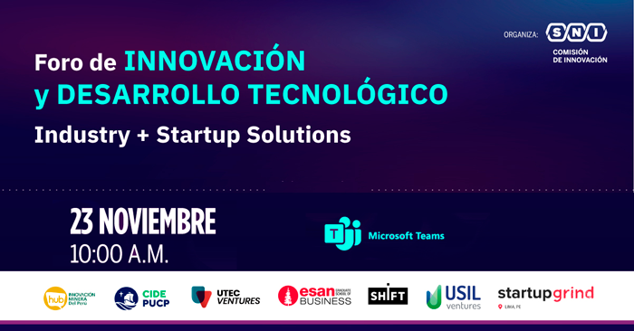 Foro virtual gratuito "Innovación y desarrollo tecnológico Industry + Startup Solutions" de SNI