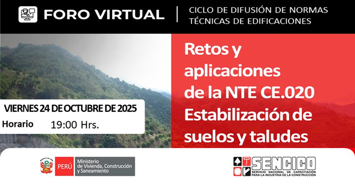 Foro virtual gratuito "Retos y Aplicaciones de la CE.020 Estabilizacón de suelos y taludes" del SENCICO