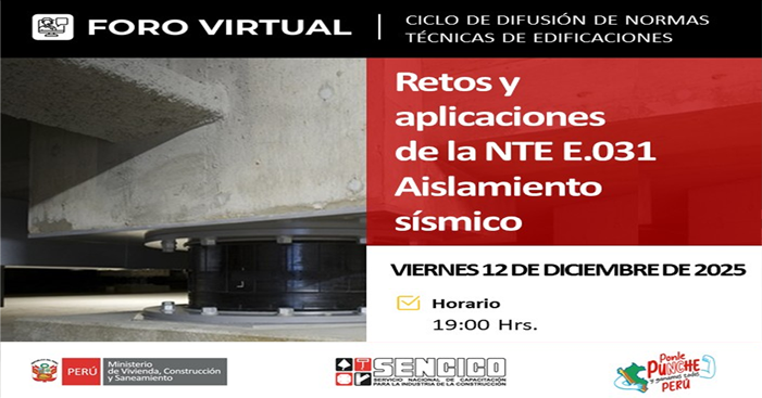 Foro virtual gratuito "Retos y Aplicaciones de la Norma Técnica de Edificaciones E.031 Aislamiento Sísmico" del SENCICO