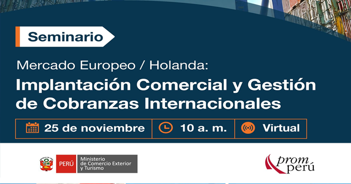 Seminario virtual: "Mercado Europeo / Holanda: Implantación Comercial y Gestión de Cobranzas Internacionales" del PromPerú