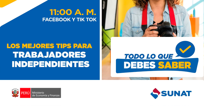 Evento virtual gratuito "Los mejores tips para trabajadores independientes" de la SUNAT