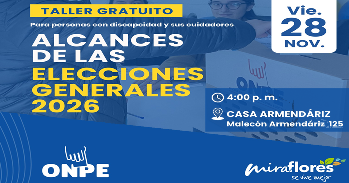 Taller presencial gratuito"Alcances de las elecciones generales 2026" de la Municipalidad de Miraflores y Bienestar Miraflores
