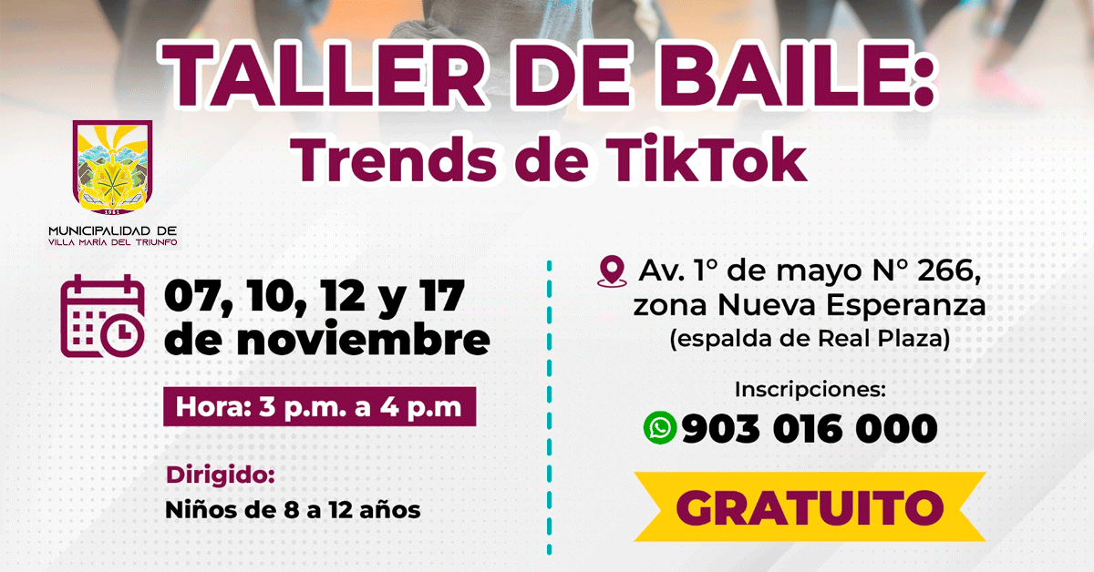 Taller presencial gratuito: "Baile: Trends de TikTok" de la Municipalidad de Villa María del Triunfo