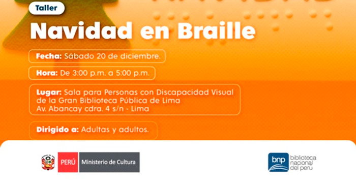 Los interesados deben asistir a la Sala para Invidentes, Gran Biblioteca Pública de Lima, Av. Abancay cuadra 4, Cercado de Lima