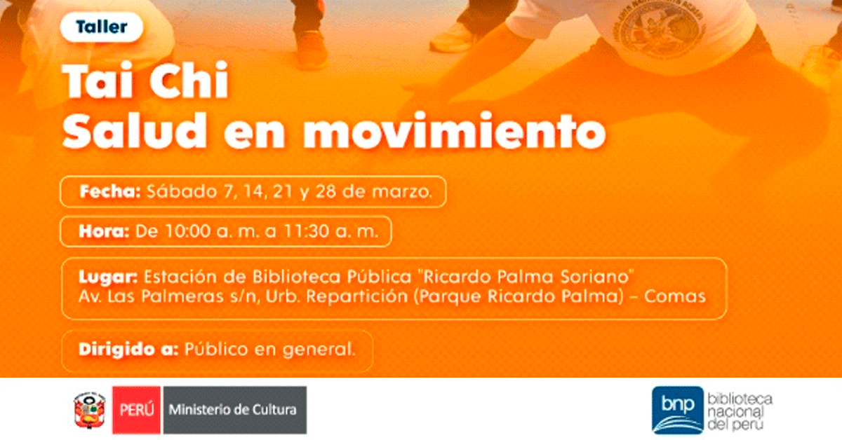 Es una actividad orientada a promover el bienestar integral de la comunidad a través de la práctica suave y armoniosa del Tai Chi. Durante la sesión, los participantes aprenderán movimientos básicos, técnicas de respiración y principios de equilibrio que favorecen la relajación, la concentración y la movilidad corporal.