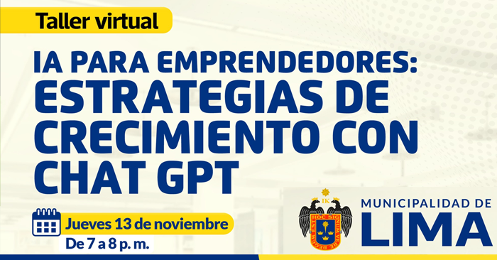 Taller virtual "IA para emprendedores: Estrategias de crecimiento con Chat GPT" del Desarrollo Económico de la Municipalidad de Lima