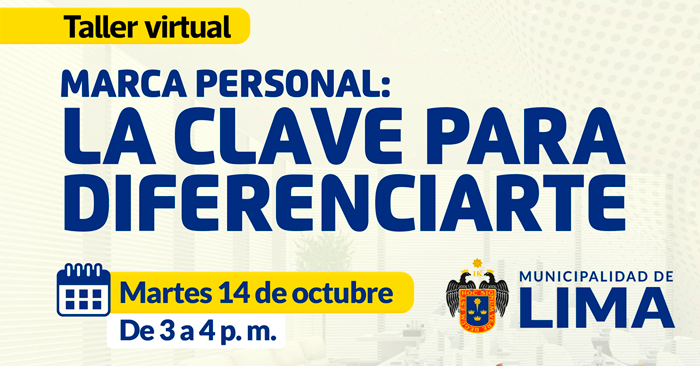 Taller virtual gratuito: "Marca personal: la clave para diferenciarte" de la Municipalidad de Lima