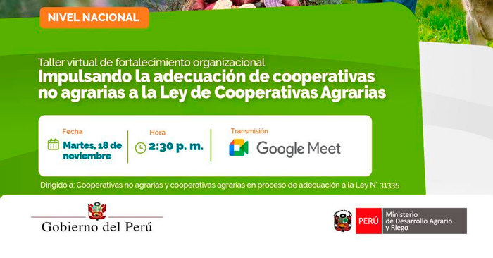 Taller virtual "Impulsando la adecuación de cooperativas no agrarias a la Ley de Cooperativas Agrarias" del MIDAGRI