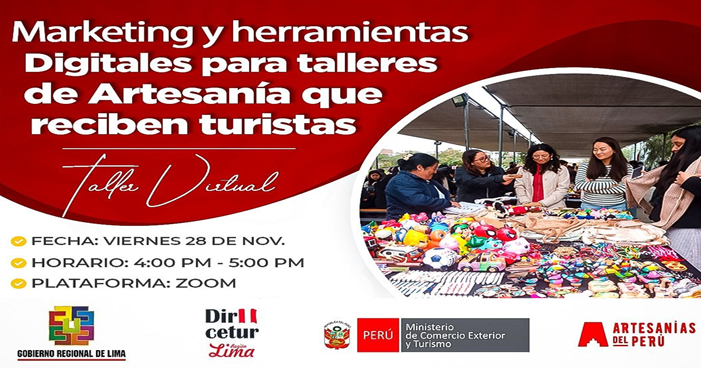 En este espacio se brindarán conocimientos prácticos para mejorar la experiencia de compra del visitante, difundir los productos artesanales en medios digitales y fortalecer la articulación comercial con el sector turístico.