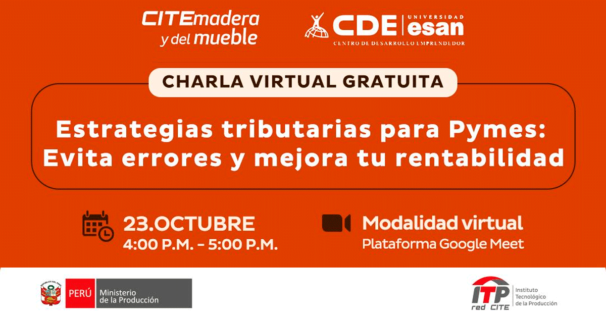 Charla virtual gratuita "Estrategias tributarias para Pymes: evita errores y mejora tu rentabilidad" del CITEmadera - ITP