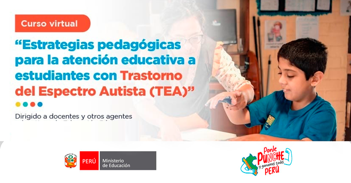 En el curso, además, se podrán conocer aquellos aspectos generales y específicos sobre el TEA, así como los indicadores de alerta en las áreas de interacción social, comunicación y lenguaje, y en los procesos de aprendizaje. Asimismo, se detallarán estrategias en el marco del Diseño Universal para el Aprendizaje (DUA) y las áreas del Currículo Nacional de la Educación Básica (CNEB).
