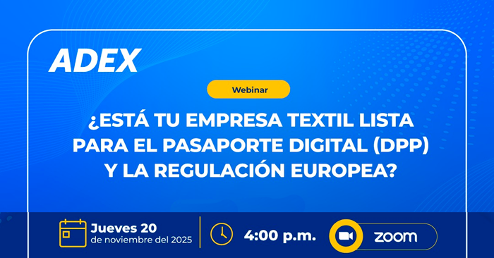 Webinar virtual "¿Está tu empresa textil lista para el Pasaporte Digital (DPP) y la Regulación Europea?" de la Asociación de Exportadores ADEX