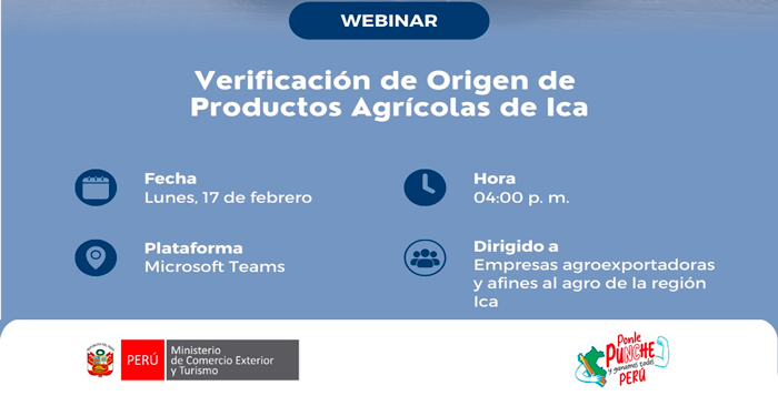 Webinar virtual "Verificación de Origen de Productos Agrícolas" del Mincetur